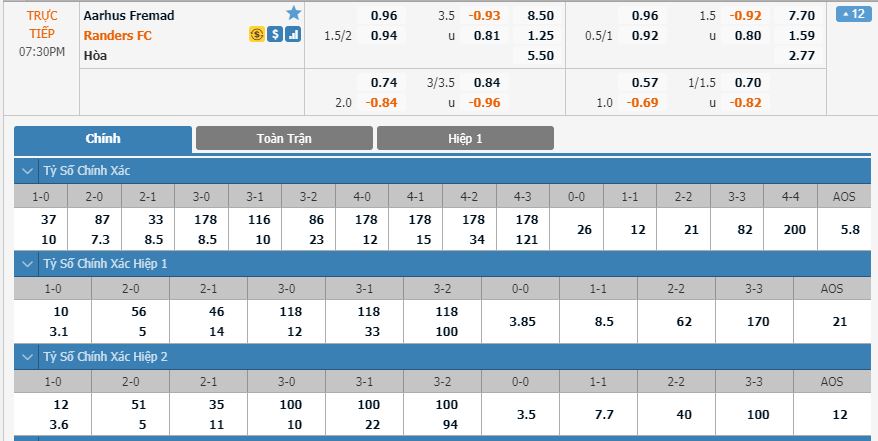 Soi kèo tài xỉu, kèo tỷ số Aarhus Fremad vs Randers