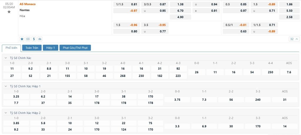 Soi kèo tài xỉu, kèo tỷ số AS Monaco vs Nantes