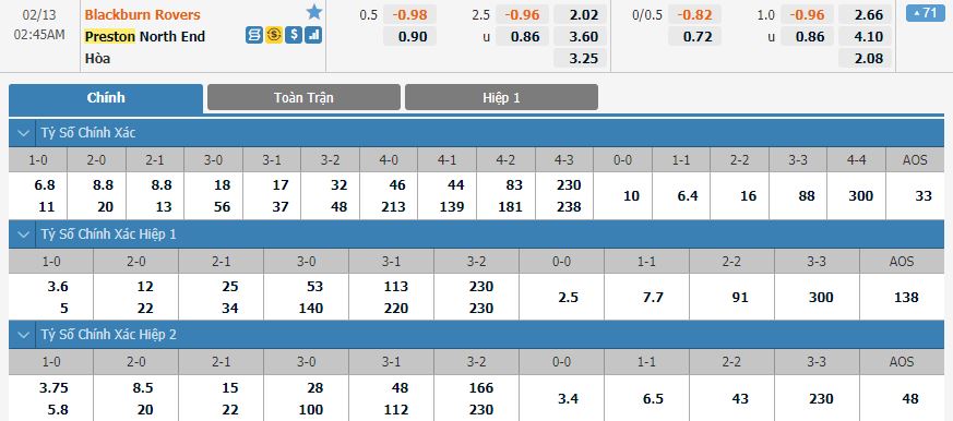 Soi kèo tài xỉu, kèo tỷ số Blackburn vs Preston