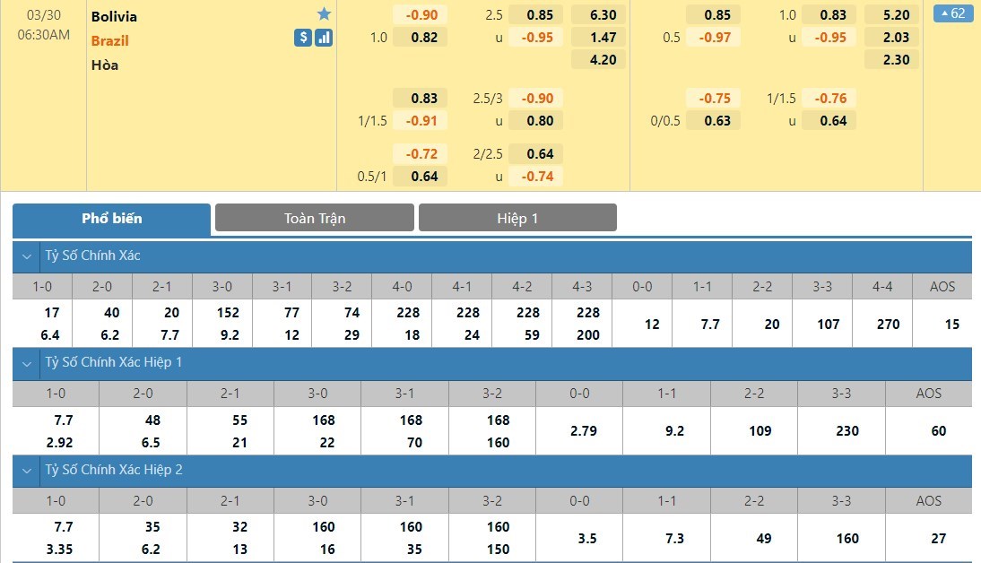 Soi kèo tổng quát Bolivia vs Brazil