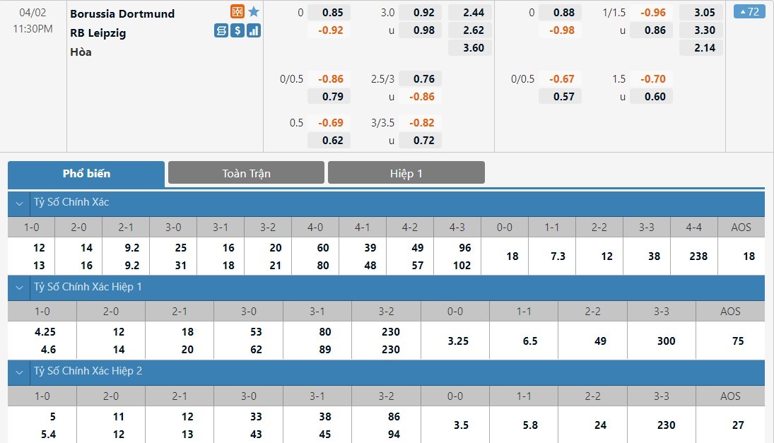 Soi kèo tổng quát Borussia Dortmund vs RB Leipzig