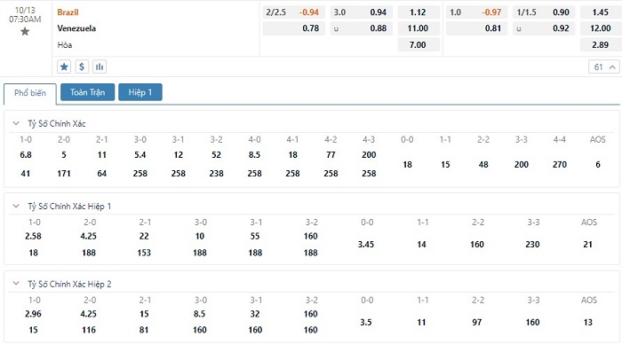 Soi kèo tài xỉu, kèo tỷ số Brazil vs Venezuela