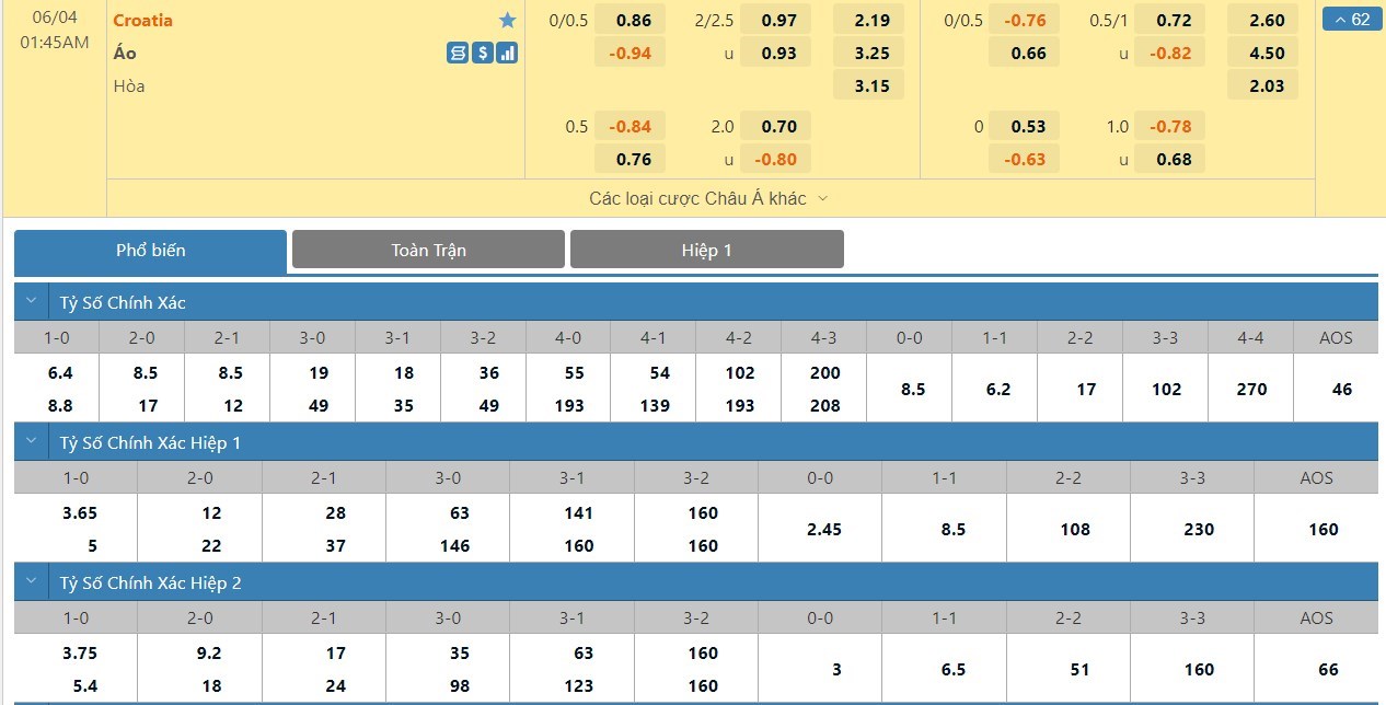 Soi kèo tài xỉu, kèo tỷ số Croatia vs Áo