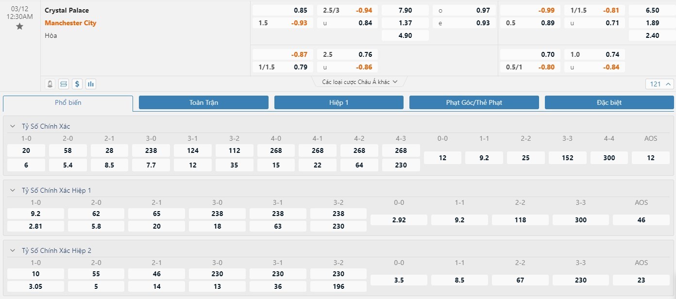 Soi kèo tổng quát Crystal Palace vs Manchester City