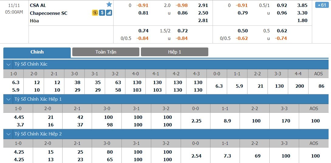 Kèo châu Á hiệp 1: CSA +0 (HT)