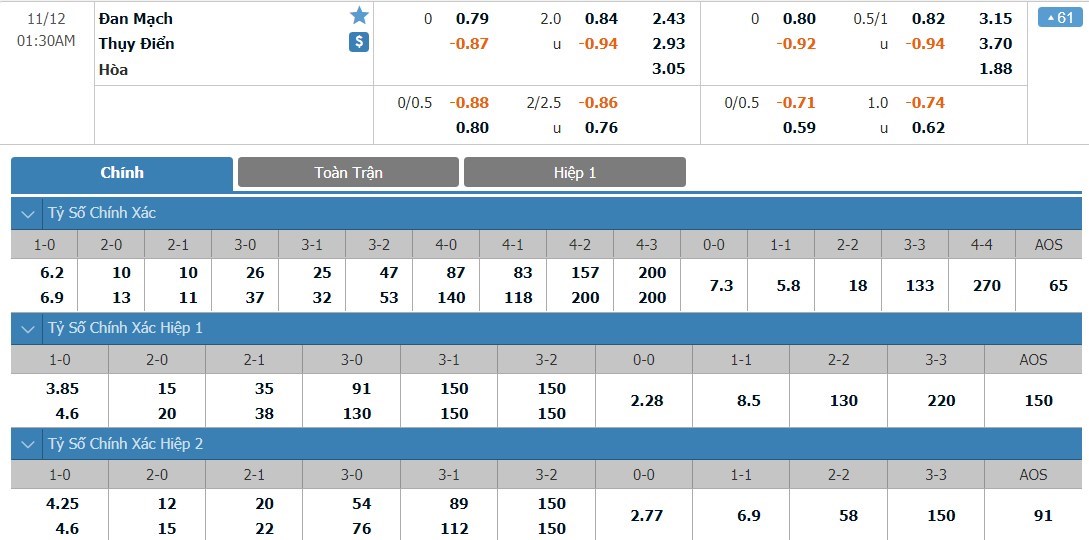 Soi kèo tài xỉu, kèo tỷ số Đan Mạch vs Thụy Điển