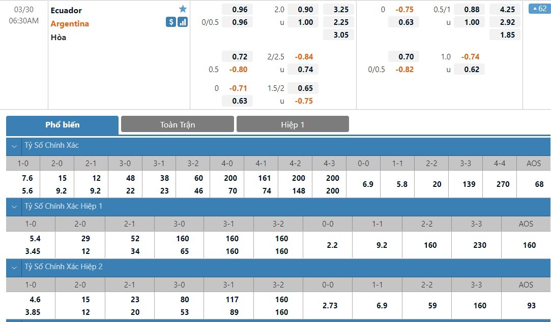 Soi kèo tài xỉu, kèo tỷ số Ecuador vs Argentina