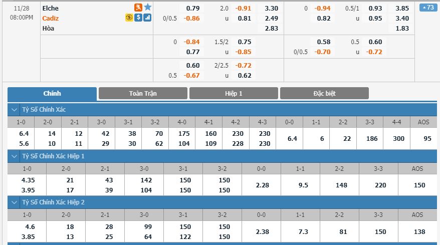 Trong khi ở vòng đấu gần nhất, Cadiz vừa thua trắng trước Real Sociedad với tỷ số 0-1. Đây là trận thua thứ 2 liên tiếp của đội bóng này sau thất bại tủi hổ trước Atletico Madrid với tỷ số 0-4 hồi đầu tháng 11 vừa qua. Cộng hưởng với một thống kê đối đầu có phần thất thế, quả thực Cadiz không phải là sự lựa chọn thông minh cho kèo châu Á này mà phải là Elche.