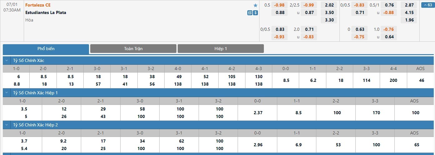 Soi kèo châu Á Fortaleza vs Estudiantes