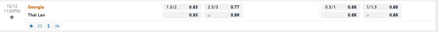 Kèo châu Á toàn trận: Georgia -1 3/4 (FT)