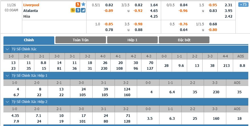 Soi kèo châu Á Liverpool vs Atalanta