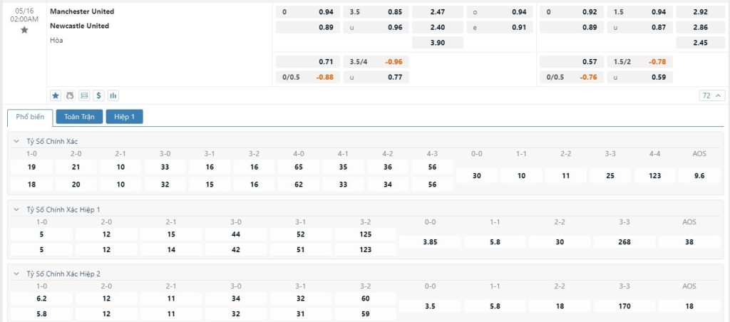 Soi kèo tài xỉu, kèo tỷ số Manchester United vs Newcastle