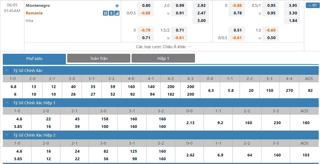 Soi kèo tài xỉu, kèo tỷ số Montenegro vs Romania