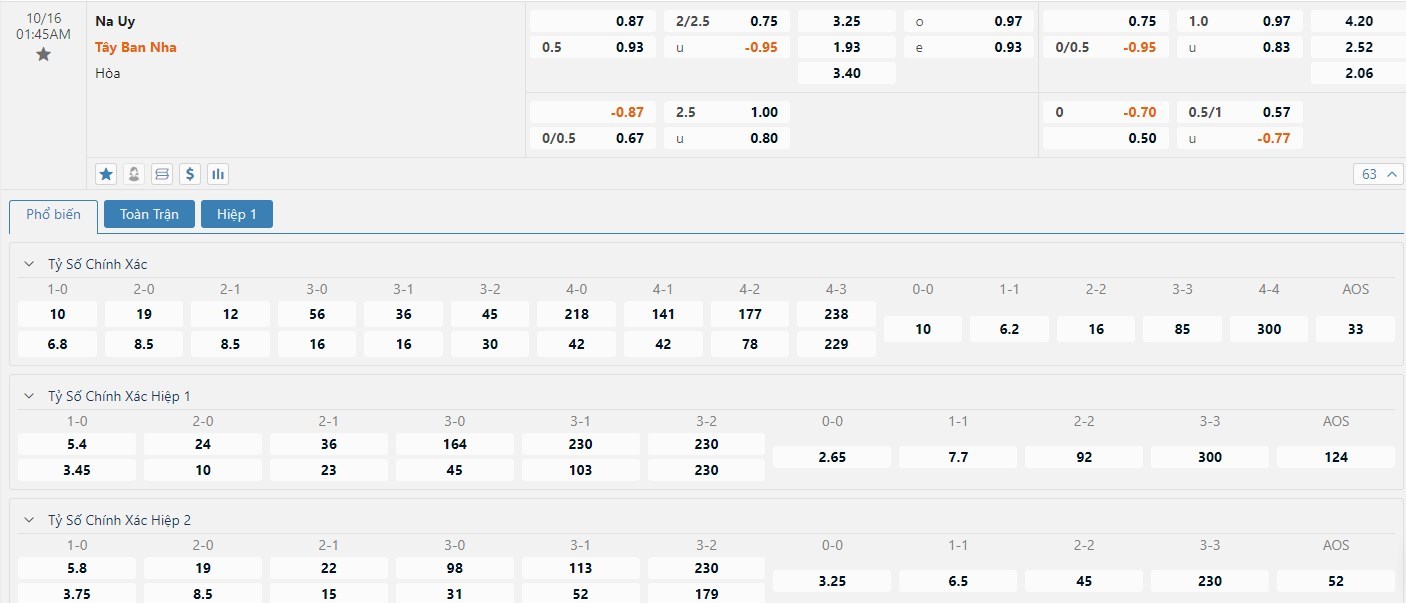 Soi kèo châu Á Na Uy vs Tây Ban Nha