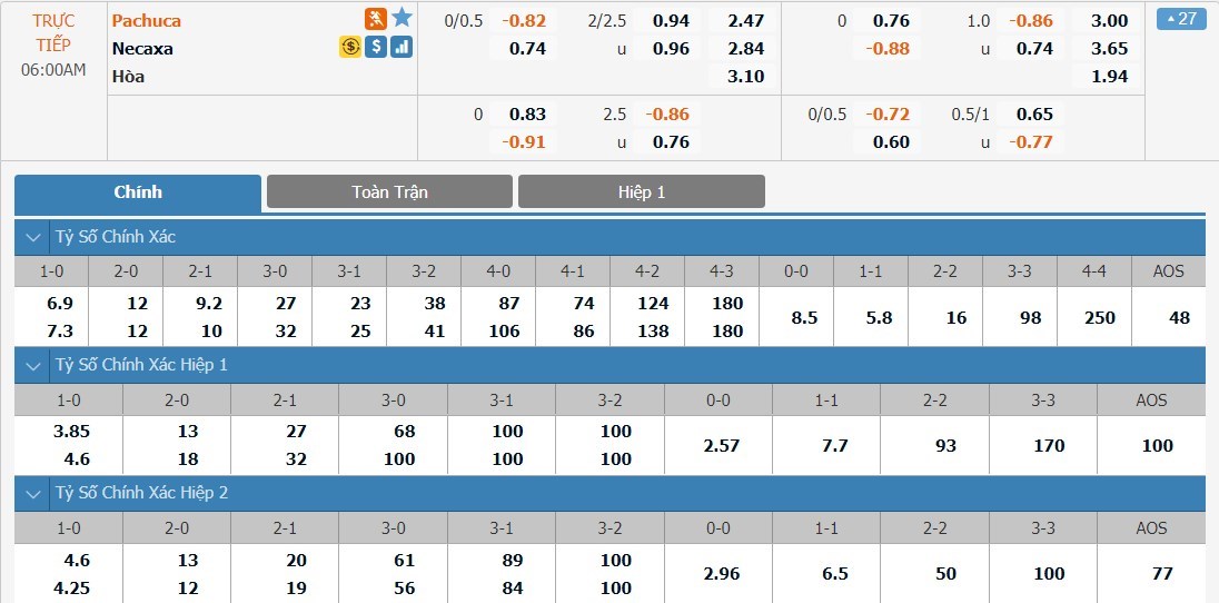 Trong cả 3 lần gần đây nhất 2 đội gặp nhau, trận đấu đều kết thúc với nhiều hơn 2 bàn thắng được ghi. Hàng công của Necaxa đang có phong độ tốt khi mà họ ghi được 7 bàn thắng trong 4 trận gần nhất. Pachuca cũng đang tấn công không quá tệ và với một tỷ lệ tài xỉu khá thấp, có thể tin tưởng ô cược tài ở kèo đấu này.