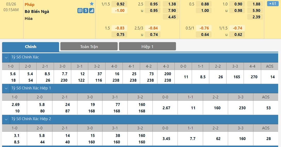 Kèo châu Á hiệp 1: Pháp -1/2 (HT)