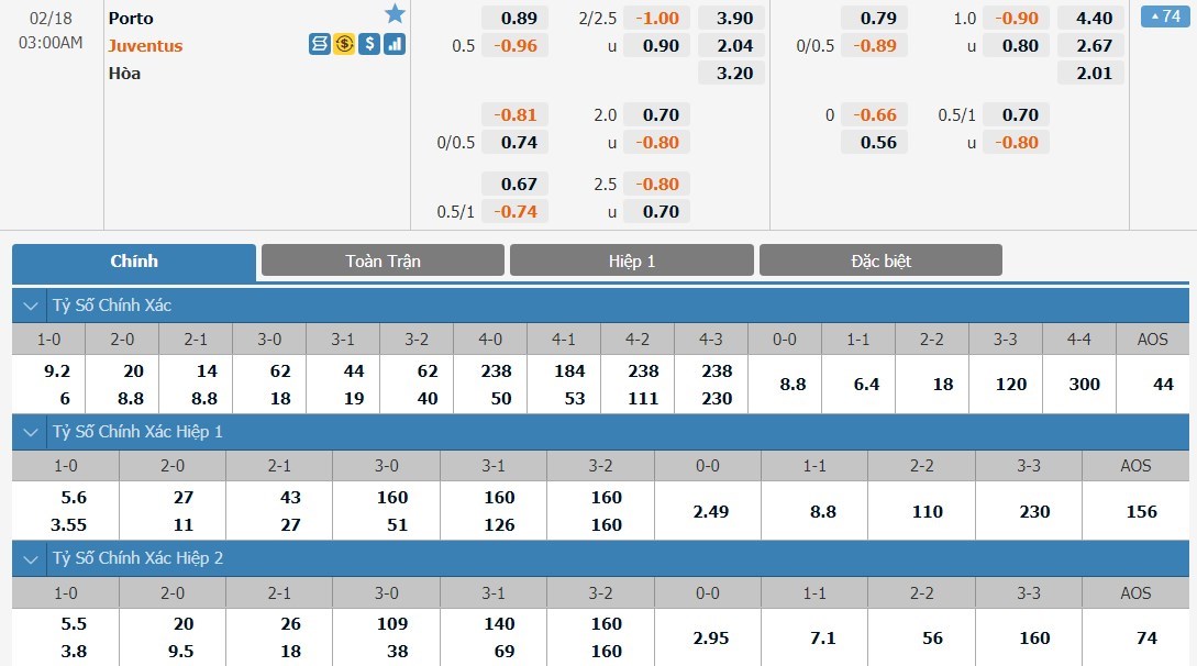Soi kèo tài xỉu, kèo tỷ số Porto vs Juventus