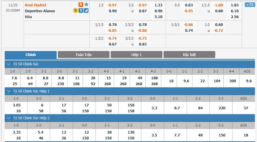 Dự đoán kèo tỷ số hiệp 1: Real Madrid 2-0 Deportivo Alaves