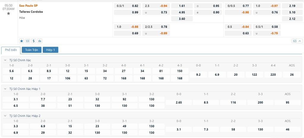 Soi kèo tài xỉu, kèo tỷ số Sao Paulo vs Talleres Cordoba