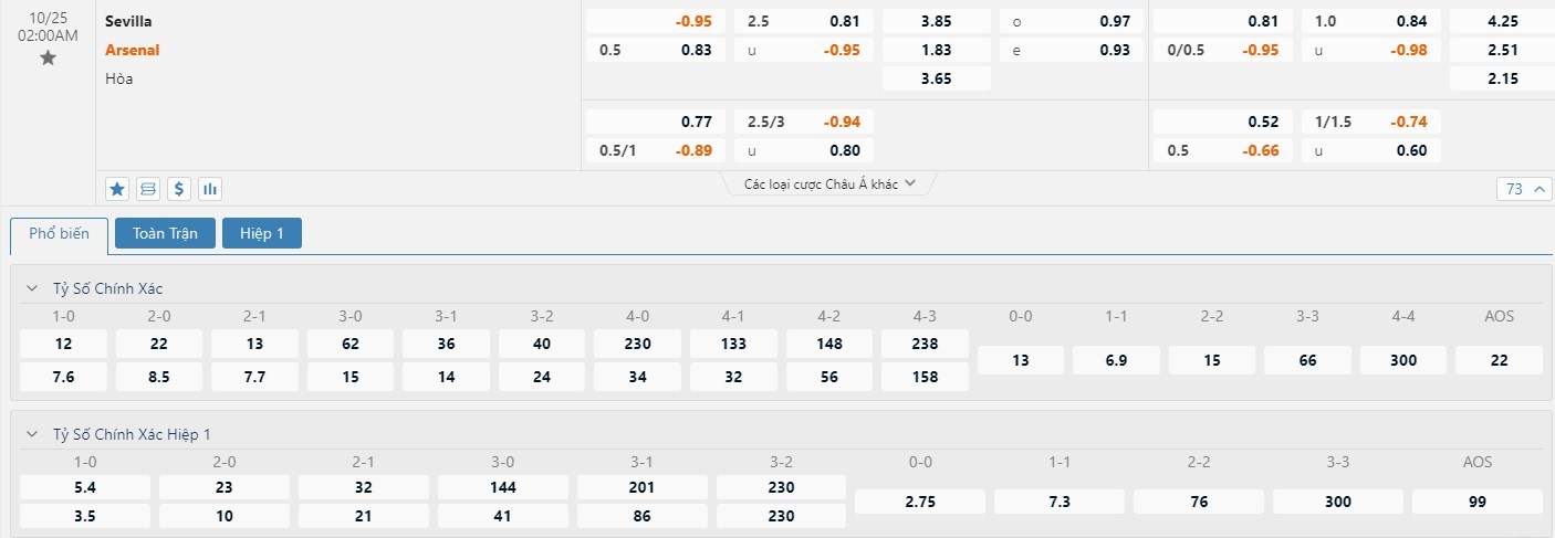 Soi kèo châu Á Sevilla vs Arsenal