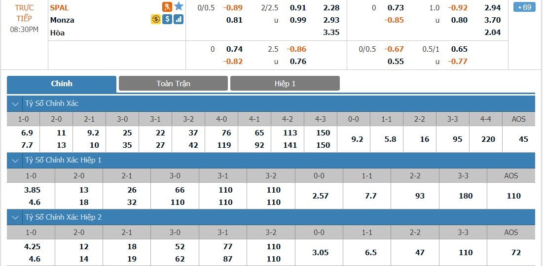 Soi kèo tài xỉu, kèo tỷ số Spal vs Monza