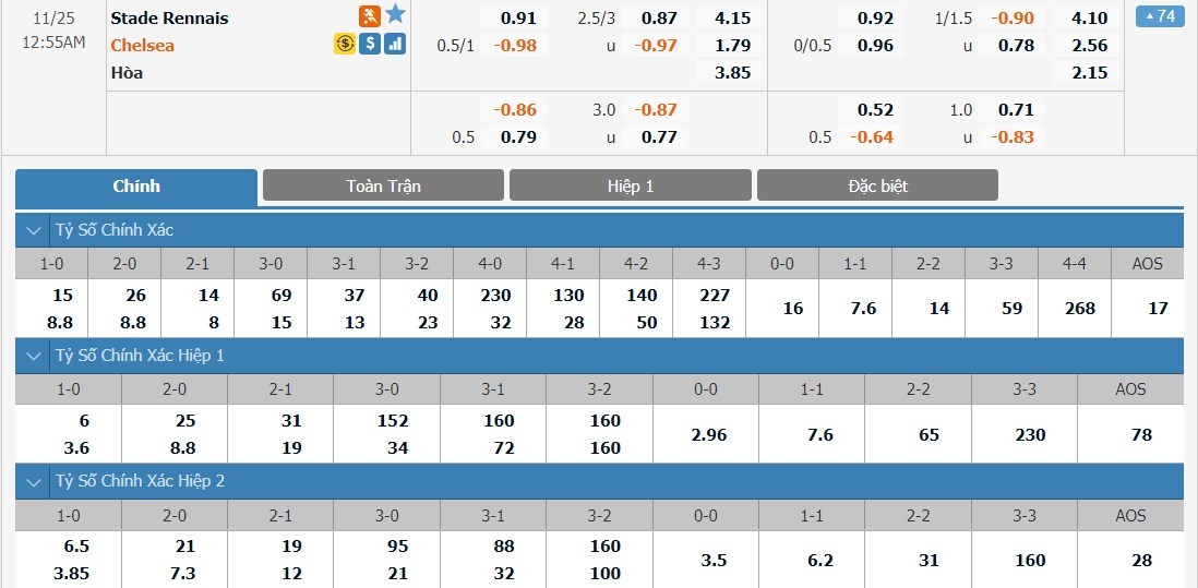 Soi kèo tài xỉu, kèo tỷ số Stade Rennais vs Chelsea