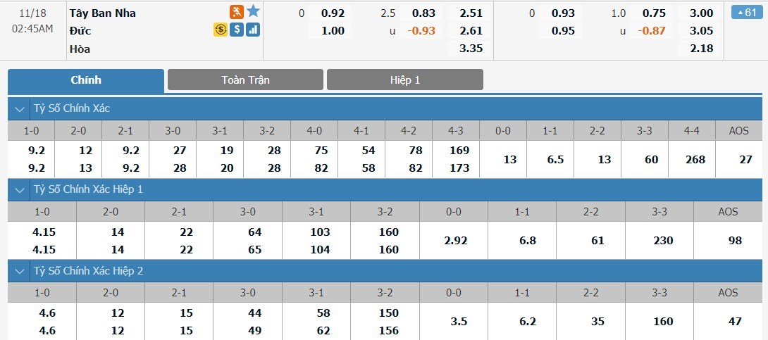 Soi kèo tài xỉu, kèo tỷ số Tây Ban Nha vs Đức