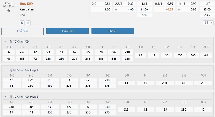 Soi kèo tổng quát Thụy Điển vs Azerbaijan