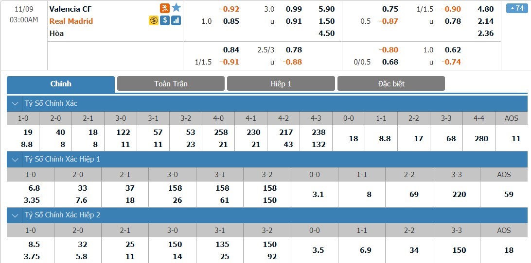Soi kèo tài xỉu, kèo tỷ số Valencia vs Real Madrid
