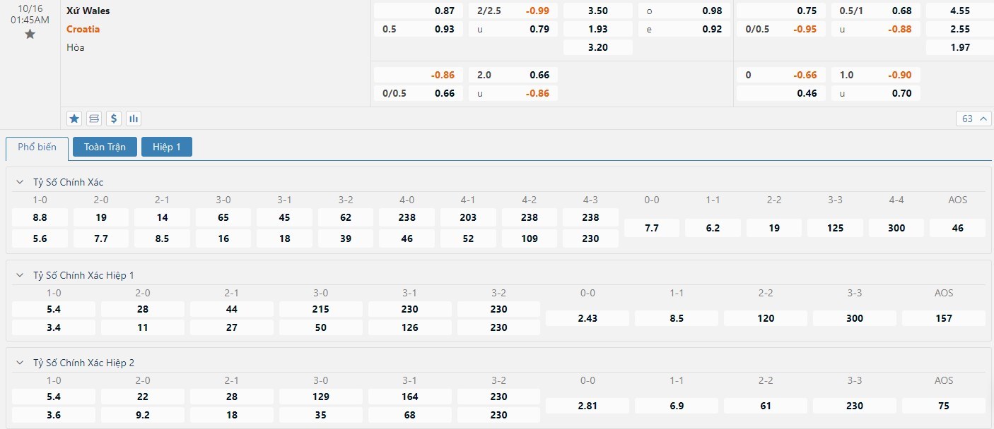 Soi kèo tài xỉu, kèo tỷ số Wales vs Croatia