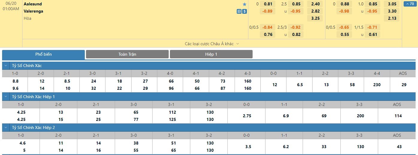 Tip kèo tỷ số full time: Aalesund 1-0 Valerenga