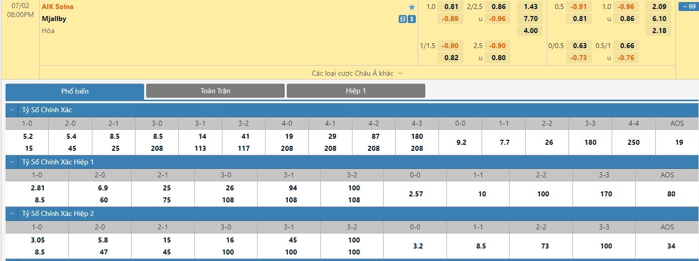 Tip kèo tỷ số hiệp 1: AIK 1-0 Mjallby