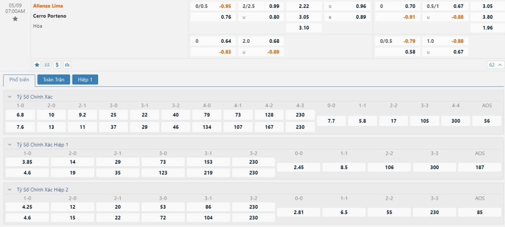 Alianza Lima vẫn được nhà cái xếp ở thế cửa trên, tuy vậy thì mốc chấp khiêm tốn -1/4 trái cũng chỉ ra thực tế rằng đội ngũ chuyên môn bày tỏ sự hoài nghi vào khả năng giành chiến thắng của chính đội chủ nhà. Đây là điều có thể lý giải bởi Alianza Lima thể hiện bộ mặt khá thất thường. Trong 3 trận đấu gần đây, Alianza Lima thắng 1, hòa 1 và thua 1 trận. Họ cũng không ghi quá nổi 1 bàn thắng mỗi trận trong 3 trận đấu kể trên.