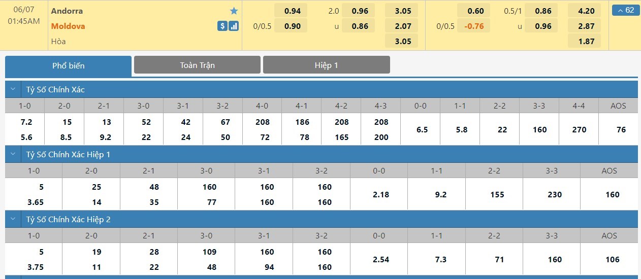 Tip kèo tỷ số hiệp 1: Andorra 0-0 Moldova