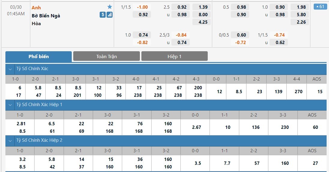 Tip kèo Tài Xỉu hiệp 1: Chọn Xỉu 1 1/4