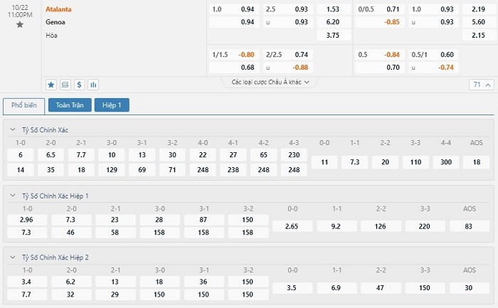 Trong 6 trận gần nhất đối đầu, Genoa đều không thể vượt qua Atalanta. Cụ thể, Genoa thua 2 và hòa 4 khi gặp Atalanta. Đánh giá dựa theo phong độ, Atalanta thắng 3, hòa 1 và chỉ thua 1 trận trong 5 lượt trận gần nhất tại Serie A. Không phải ngẫu nhiên mà nhà cái đặt Atalanta ở thế cửa trên chấp tỷ lệ -1 trái.