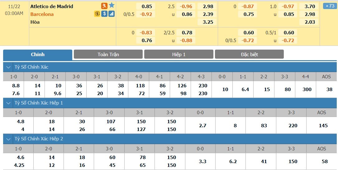 Tip kèo tỷ số hiệp 1: Atlético Madrid 0-0 Barcelona