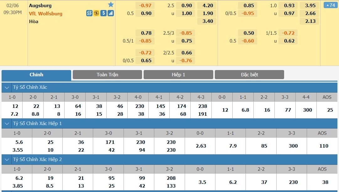 Dù cho Augsburg được thi đấu trên sân nhà nhưng nhà cái lại dành cho đội khách mốc chấp -1/2 bàn. Nguyên nhân đến từ phong độ trái ngược của hai đội. Nếu như Augsburg chỉ thắng 1 trận trong 5 vòng đấu gần nhất, còn lại là 4 trận thua thì ở phía đối diện, Wolfsburg đang thể hiện sự ổn định với mạch 5 trận liền bất bại (thắng 3, hòa 2). Riêng trong 2 trận đấu gần nhất phải chơi trên sân khách, Wolfsburg đều giành được chiến thắng chung cuộc.