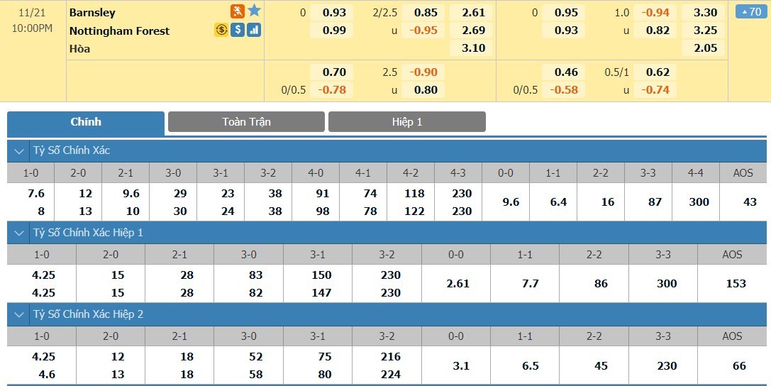 Trong con mắt của đội ngũ chuyên môn, Barnsley đang là ô cược sáng giá với thông số thắng kèo châu Á ở 5/6 trận gần đây. Nhìn sang phía Nottingham Forest, dù được đánh giá là đội bóng có khả năng tranh chấp vị trí trong top 6 nhưng những gì Nottingham Forest thể hiện từ đầu mùa cho đến nay lại khiến người ta phải lắc đầu ngán ngẩm, đặc biệt là khi đội bóng này phải chơi xa nhà.
