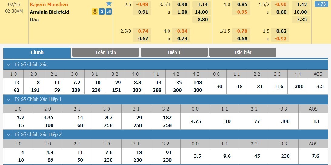 Tỷ lệ kèo chấp của trận đấu này có sự chênh lệch cực kì lớn khi nhà cái đưa ra mốc chấp sâu lên tới -2 1/2 bàn cho chủ nhà. 5 lần gần nhất làm khách tại Alianz Arena, có thể Arminia Bielefeld đã toàn thua nhưng đó đều là cách biệt từ 1 đến 2 bàn. Bayern Munich thì vừa có lịch di chuyển khá dày khi mà vừa trở về từ Tây Á dự FIFA Club World Cup. Chính vì thế, kèo dưới Arminia Bielefeld mới là lựa chọn hợp lý hơn.