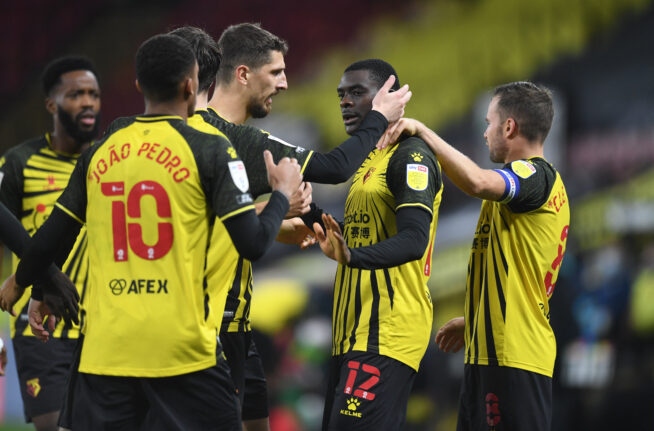 Watford: Bachmann; Femenia, Sierralta, Troost-Ekong, Masina; Cleverley, Chalobah; Sarr, Hughes, Sema; Deeney