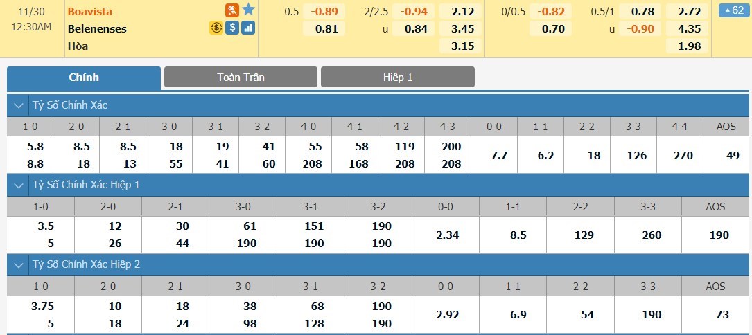 Thành tích đối đầu giữa hai đội trong 10 lần so tài gần nhất là tương đối sít sao. Boavista giành được 4 chiến thắng, 3 trận hòa và 3 thắng lợi thuộc về Belenenses SAD. Với kèo đấu này, chuyên gia 11bet có phần nghiêng về phía chủ nhà Boavista. Dù gì thì nếu tính hẹp lại trong 3 lần gần nhất hai đội đụng độ, Boavista chiếm ưu thế với 2 thắng lợi. Thống kê cho thấy 9/10 lần so tài đã qua giữa hai đội bóng này kết thúc với chỉ tối đa 2 bàn thắng.