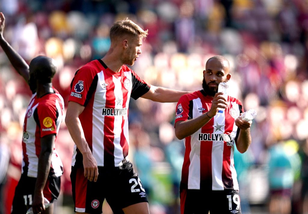 Brentford: Flekken, Reguilon, Pinnock, Collins, Ajer, Janelt, Norgaard, Jensen, Wissa, Toney, Mbeumo.