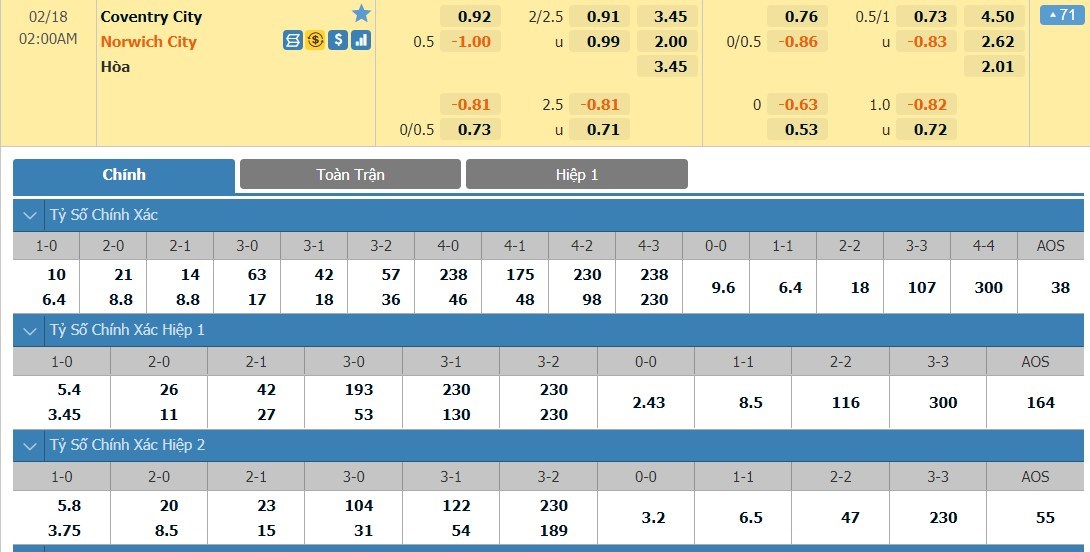Tip bóng đá hôm nay lúc 02h00 ngày 18/02/2021 – Coventry City vs Norwich City – Hạng Nhất Anh