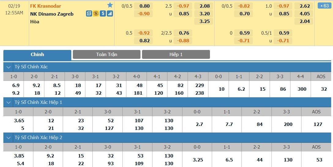 Tip bóng đá hôm nay lúc 00h55 ngày 19/02/2021 – FC Krasnodar vs Dinamo Zagreb – Europa League