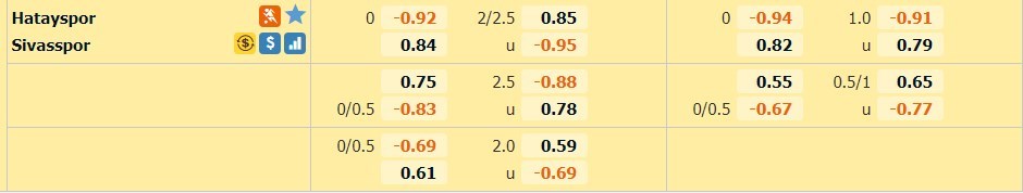 Đây là lần đầu tiên hai đội bóng này đối mặt với nhau và trong hoàn cảnh phong độ của cả hai đều không tốt thì sự thận trọng nhiều khả năng là cách hai đội bóng áp dụng để bước vào quãng thời gian đầu trận. Cách nhập cuộc của 2 đội là khá giống nhau. Hatayspor bước vào giờ nghỉ với 1 thắng, 2 hòa và 1 thua. Trong khi đó, con số mà Sivasspor có là 1 thắng, 2 thua và 2 thua. Khả năng cao, với sự cân bằng này, ta có thể có 1 kết quả hòa ở 45 phút đầu tiên. Hatayspor dẫu sao cũng là đội bóng tân binh mới thăng hạng và họ sẽ khó lòng chơi sòng phẳng trong cuộc đụng độ này. Chỉ cần kiếm được 1 điểm từ tay Sivassporcũng được xem là thành công đối với đội chủ nhà.