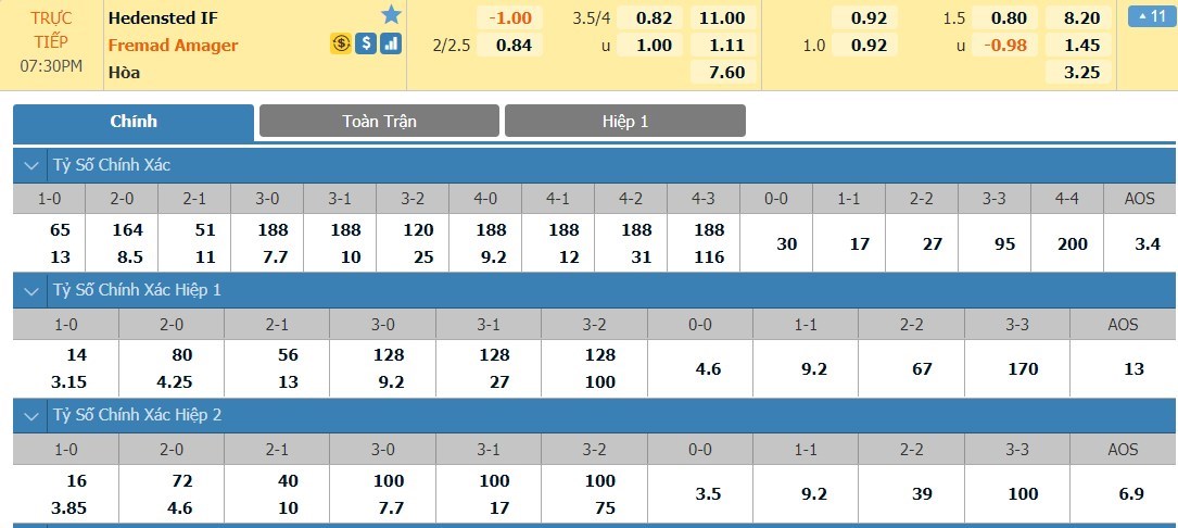 Tip kèo Châu Á hiệp 1: Chọn Fremad Amager -1