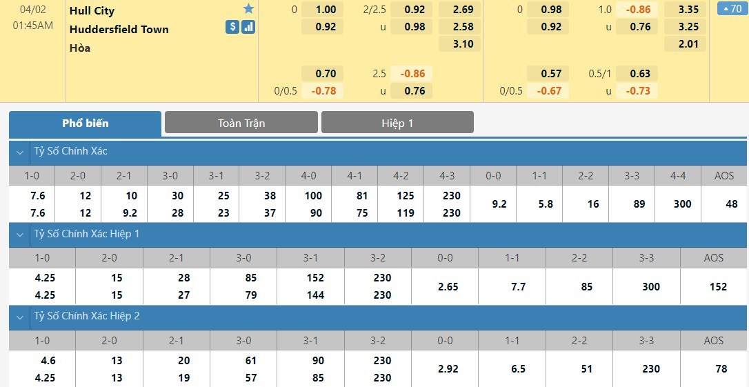 Tip kèo Châu Á hiệp 1: Chọn Hull +1/4