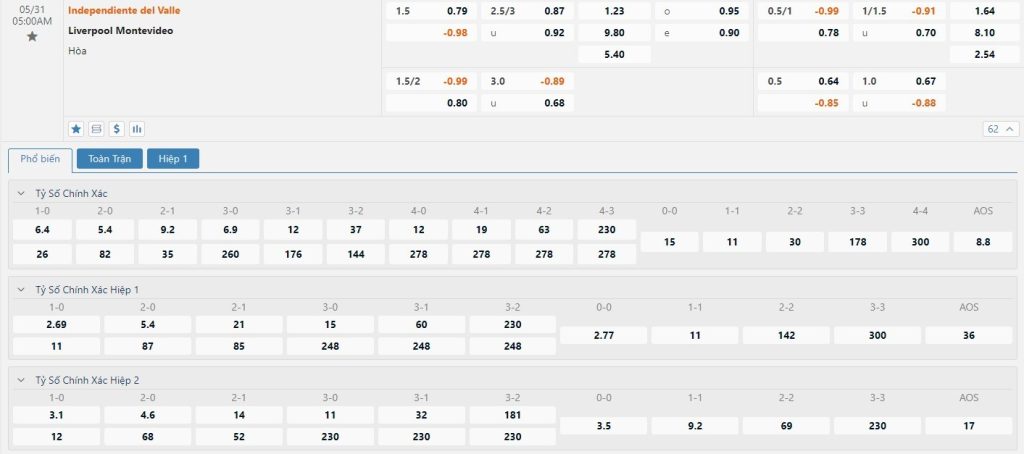 Trong 5 trận đấu gần nhất trên mọi đấu trường, Ind. del Valle đã mang về cho mình 5 pha lập công cùng với 6 lần phải vào lưới nhặt bóng. Bên kia chiến tuyến, Liverpool Montevideo đã sở hữu 7 bàn thắng, còn lại là việc hàng thủ đã phải nhận 12 bàn thua. Trong 3 lần gần nhất hai đội bóng này đối đầu nhau thì đã không có trận đấu nào kết thúc với tổng số bàn thắng từ 3 trở lên. Các nhà đầu tư nên tin tưởng vào khả năng ra cửa Xỉu ở cuộc đối đầu này.