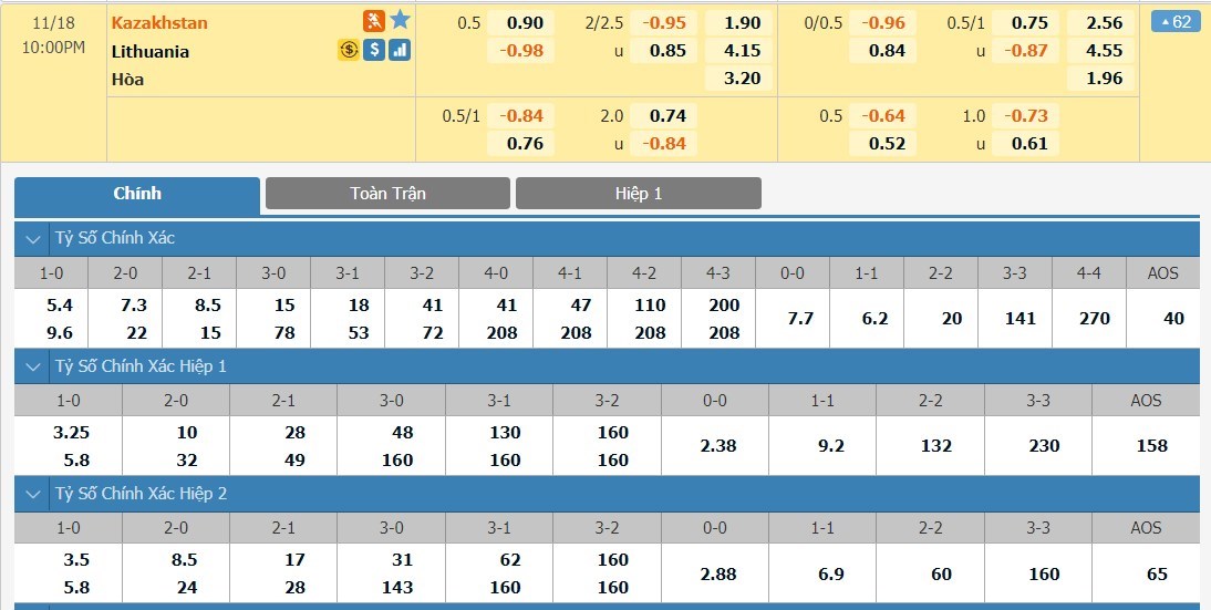Tip kèo tỷ số hiệp 1: Kazakhstan 0-0 Lithuania